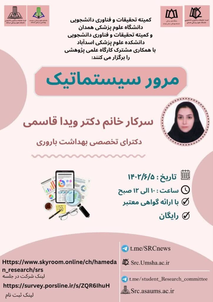 کمیته تحقیقات و فناوری دانشجویی دانشکده علوم پزشکی اسدآباد و کمیته تحقیقات و فناوری دانشجویی دانشگاه علوم پزشکی همدان با همکاری مشترک برگزار می کنند: