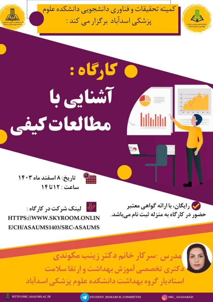 کمیته تحقیقات و فناوری دانشجویی دانشکده علوم پزشکی اسدآباد برگزار می کند: