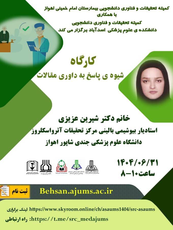 کمیته تحقیقات و فناوری دانشجویی بیمارستان امام خمینی (ره) اهواز با همکاری کمیته تحقیقات و فناوری دانشجویی دانشکده علوم پزشکی اسدآباد برگزار میکنند: