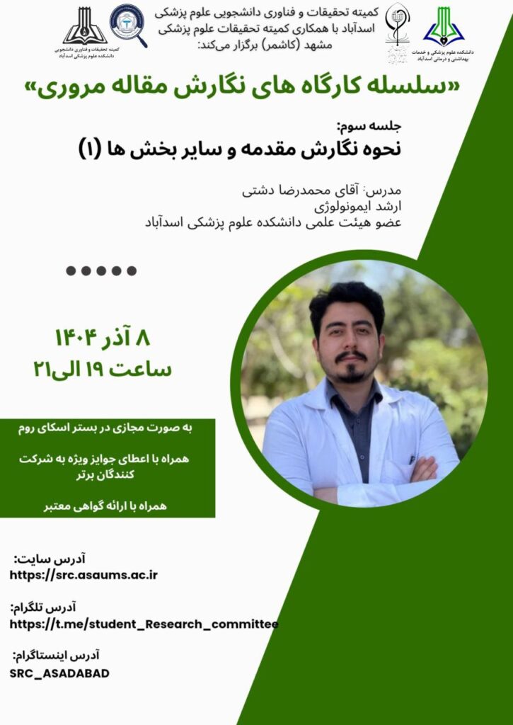 📣کمیته تحقیقات و فناوری دانشجویی علوم پزشکی اسدآباد با همکاری کمیته تحقیقات علوم پزشکی مشهد (کاشمر) برگزار میکند: