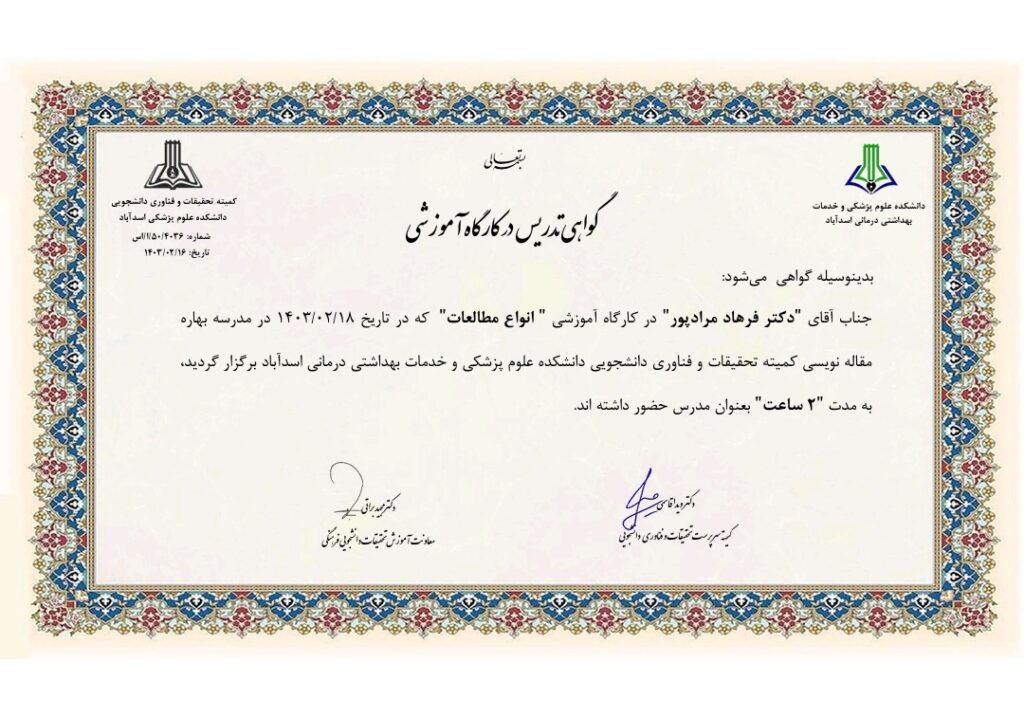 گواهی کارگاه انواع مطالعات ۱۷ اردیبهشت ۱۴۰۳