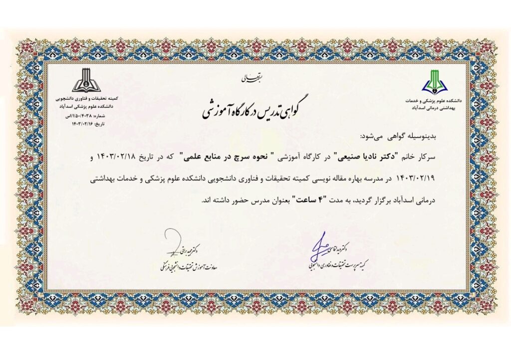 گواهی کارگاه نحوه سرچ در منابع علمی