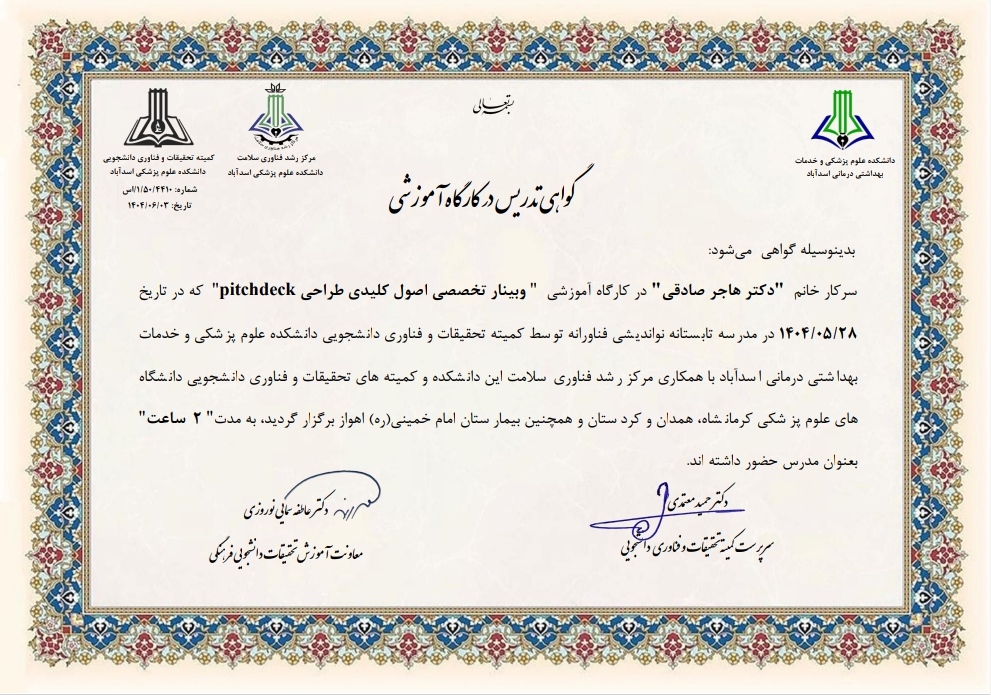 گواهی کارگاه طراحی تخصصی اصول کلیدی pitchdeck
